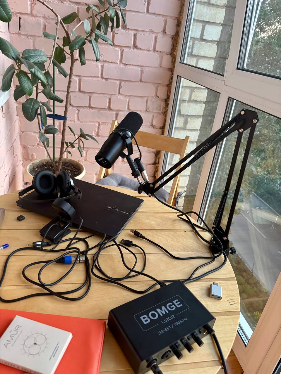 Как выяснилось, чтобы подключить этот злогребучий профессиональный микрофон недостаточно повесить его на красивую стойку. Нужна аудио карта (это такая штука с рычажочками)🙈, а она стоит почти как сам микрофон.