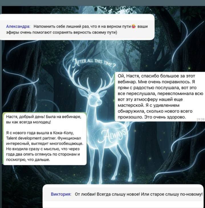 При этом я видела в чате много знакомых лиц. Людей, которые уже проходили мои программы, которые знают мою методологию, но все равно приходят. Снова и снова ❤️